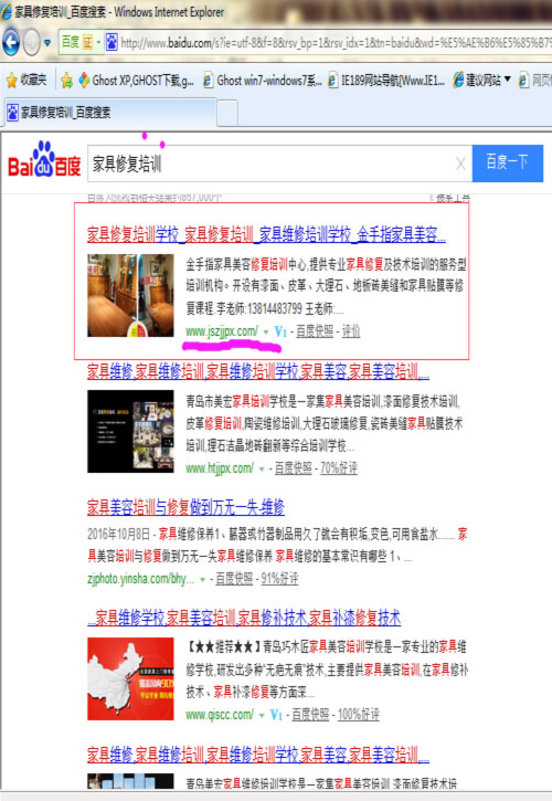 熱烈祝賀!--金手指家具美容修復(fù)中心--家具修復(fù)培訓(xùn)關(guān)鍵詞做到百度首頁(yè)!對(duì)待客戶,我們是認(rèn)真的!--泰州萬(wàn)科網(wǎng)絡(luò),http://www.30ng.com專業(yè)從事網(wǎng)站建設(shè)、移動(dòng)站建設(shè)、網(wǎng)站優(yōu)化、400電話、商匯通推廣、微信推廣等,一直被模仿,卻從未被超越!